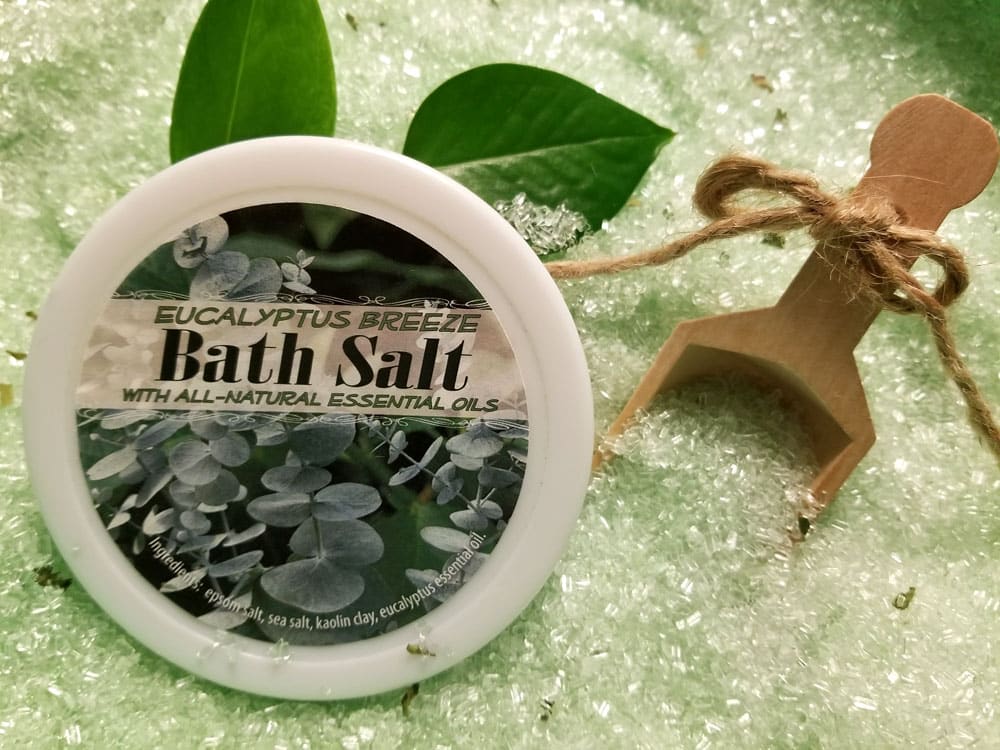 Bath salts carry many benefits beyond looking beautiful and smelling great – after using All Natural Eucalyptus Breeze Bath Salts you’ll feel the difference in your skin, your mood, and more. The benefits of All Natural Bath Salts include soothing muscle pain and aches, providing itch relief from sunburn and poison ivy, removing splinters, decreasing swelling, and boosting your body’s levels of magnesium and sulfate.